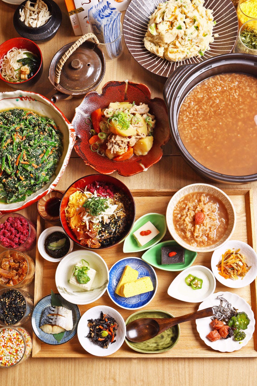 - ・前菜4種(自家製奈良漬けクリームチーズのディップ・大和なでしこ卵のだしまき・根菜ごろごろポテトサラダ・大和肉鶏のロースト)