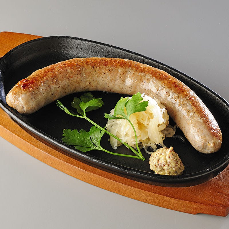 <極太!自家製ソーセージのグリル>1本160gの手作りBIGソーセージ!肉汁があふれるジューシーな味わいと美味しいビールがベストマッチ!一本一本店舗にて丁寧に腸詰めされたソーセージを是非ご堪能ください。