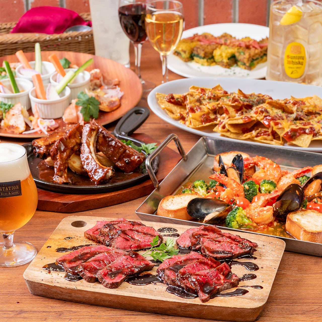 THE OLD STATION 東京一押しの【和牛ステーキ ~ステーションカット~】。凝縮感ある旨味、食べ応えあります!ビールとの相性を考えた"本能を刺激する肉メインの料理が多数ラインナップ!自家製ソーセージのグリルなど人気のメニューなどぜひお楽しみください♪