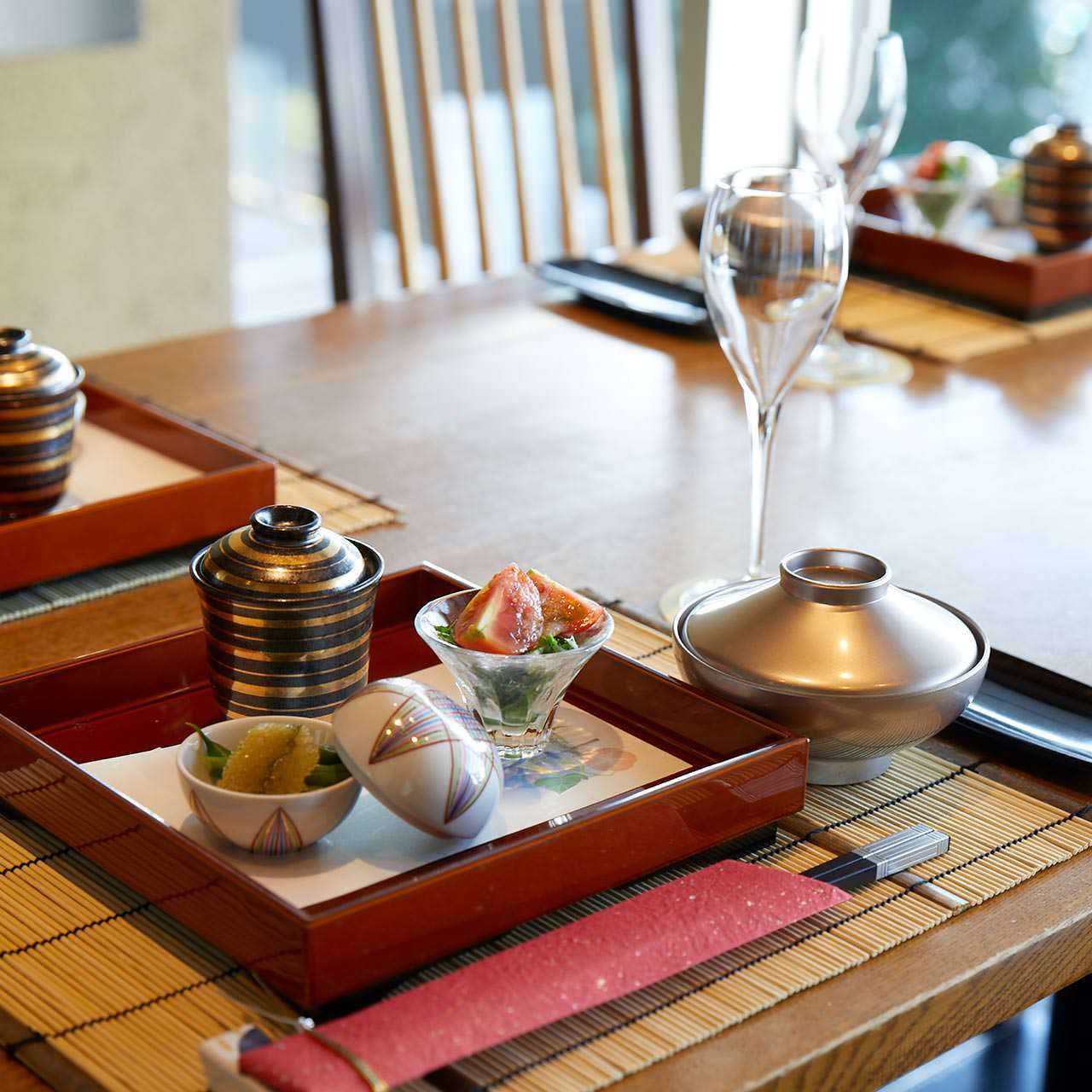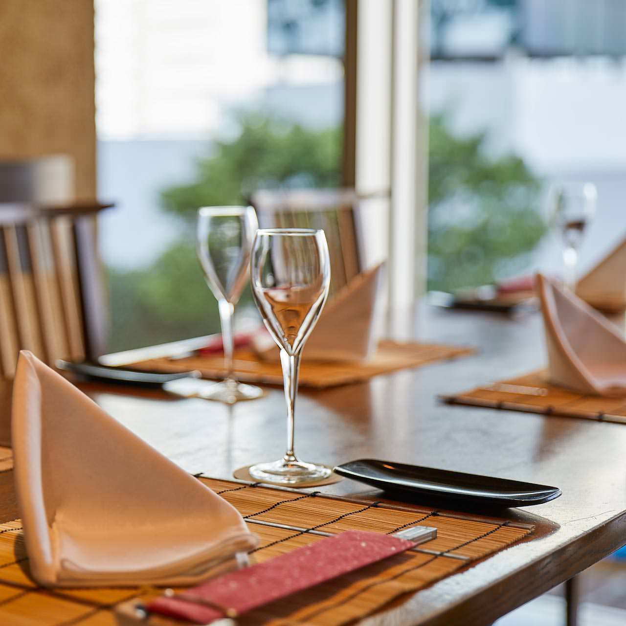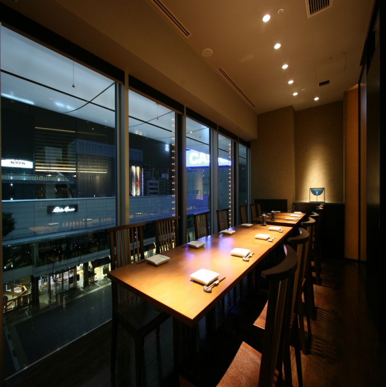 開放的な窓、木目調を基本とした、大人の落ち着きを持ったお部屋です。接待や会食などビジネスシーンでのご利用や、海外ゲストの接待、顔合わせなどの会食にも最適です。ぜひご利用ください。
