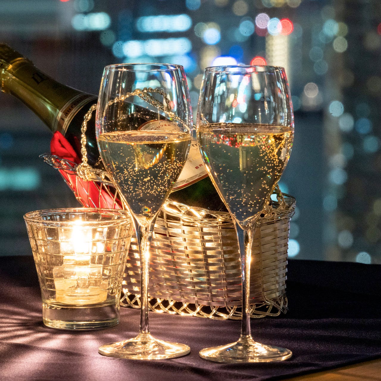 夜景と共に優雅なディナー
