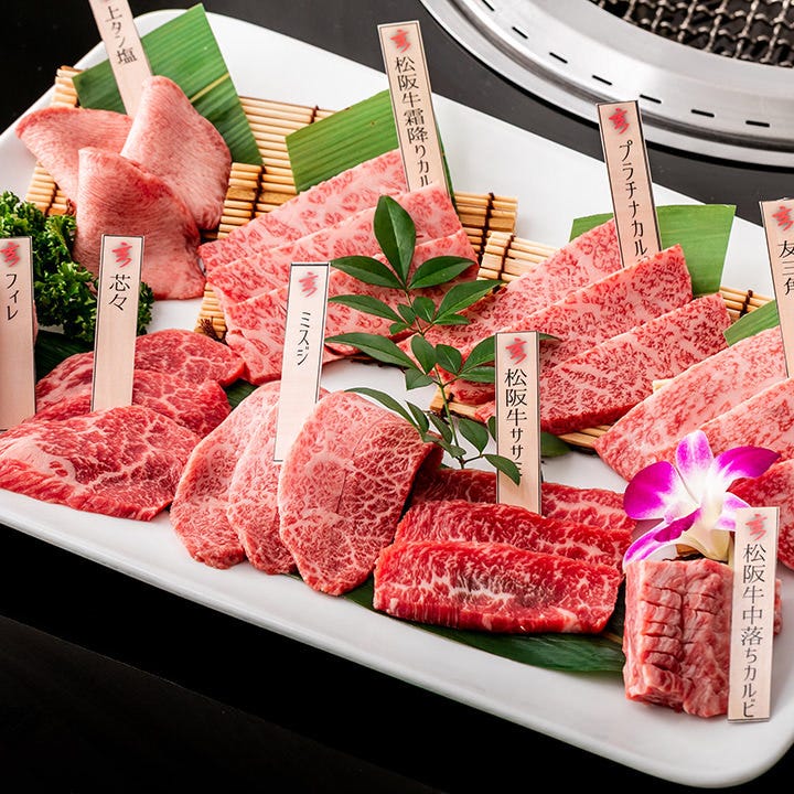 当店自慢の【松阪牛×黒毛和牛×こだわり生タン】が入った一頭買い9種盛り合わせ。](https://rimage.gnst.jp/rest/img/gy8h58yf0000/t_0nwh.jpg?t=1757381862)
