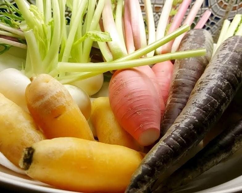 • 香川県庵治町・太田さんや、所沢の陽子ファーム、富士山の嶺・北山農園など、全国の契約農家さんから届くお野菜を、当店の野菜ソムリエこにたんが厳選致します。金美人参、ツタンカーメンえんどう豆、黄金かぶ、紅くるり大根など、珍しいお野菜が入荷することも!!