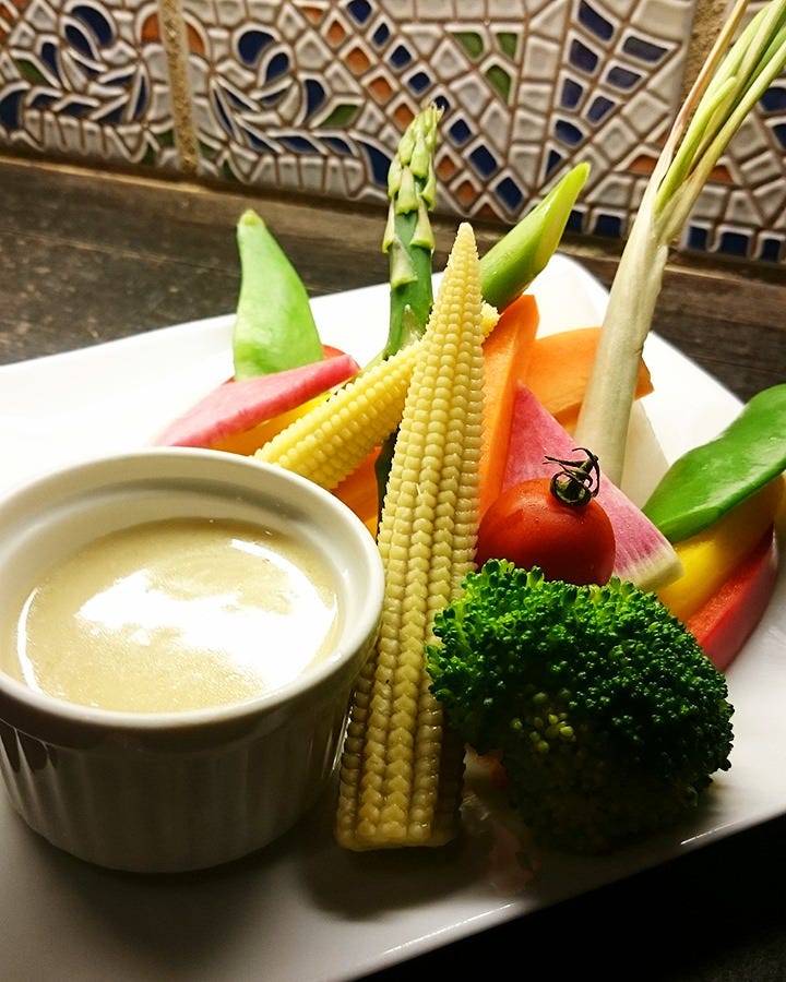 野菜ソムリエのこにたんが厳選したお野菜を3種のソースで召し上がれ!女性に大人気の一品です。