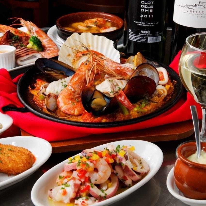 なんとハイネケン生ビール、ハートランドも飲み放題♪スペイン産スパークリングカヴァや、カクテル・ワイン・ハイボールetc.もちろん本場スペイン料理は充実しています☆彡最上級イベリコ豚ベジョータ、アヒージョ、パエリアなど。