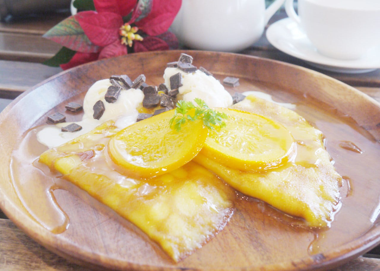 テラスで【クレープシュゼット】