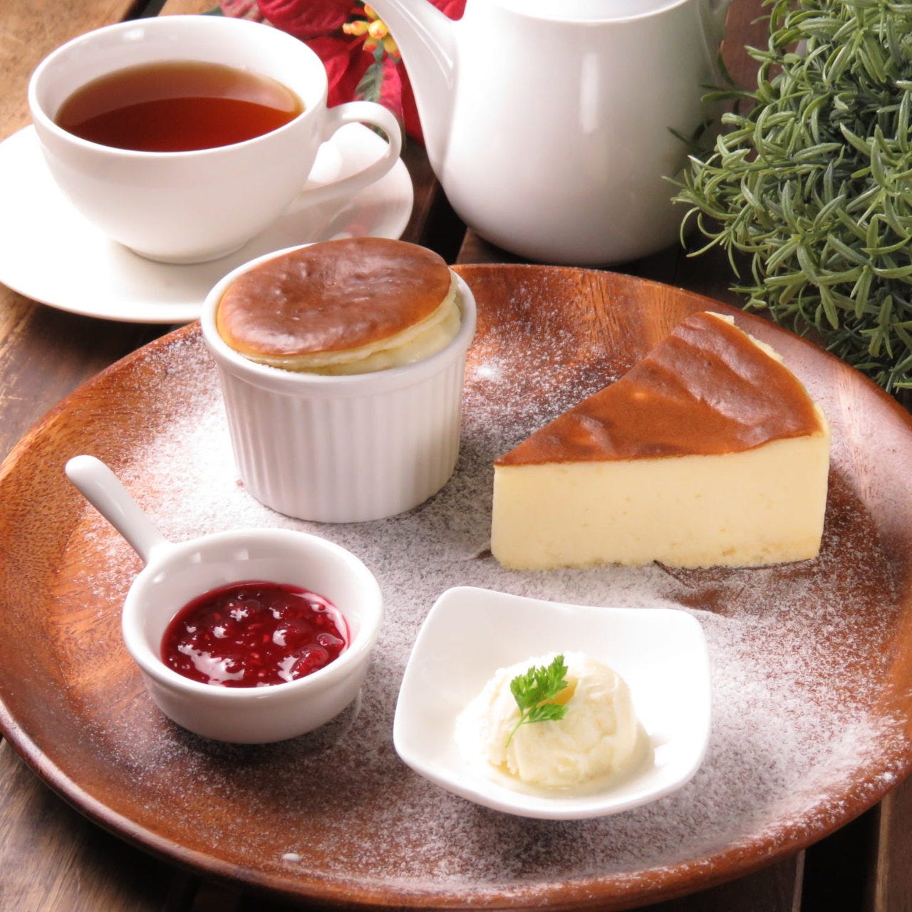 店内お召し上がりでは、オリジナルベリーソースとアイスクリームを添えてご提供!温かいチーズケーキと冷たいアイスの絶妙なコラボをお楽しみください。