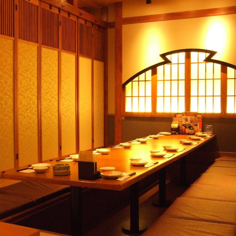 【掘りごたつ個室】脚を伸ばしながらゆったり寛げる掘りごたつ個室を完備しております。2名様~の少人数でもご案内可能なので、気心知れた友人との食事等、プライベートシーンでのご利用にもおすすめです。